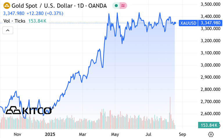 (Kitco News, Monday. Aug. 18th, 2025) – Gold prices are firmer in early U.S. trading Monday as position evening is featured early this week ahead of a major central bank event later in the week. December gold was last up $11.20 at $3,393.80. September silver prices were up $0.195 at $38.165.