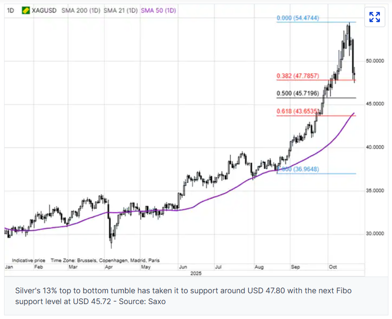 “The risk of correction in gold and silver has been steadily rising in recent days, though exceptionally strong pre-Diwali demand helped support prices,” Hansen said on Wednesday. “However, a very technical extended rally combined with renewed ‘risk-on’ tone across stock markets, a firmer dollar and not least the start of Diwali—which typically signals softer physical demand from Asia—have made traders increasingly cautious, more focused on protecting gains than chasing new highs.”