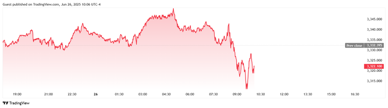 Spot gold fell to a session low of $3,310 per ounce a half hour before the release, but is staying off the low in the minutes following the housing data. It last traded at $3,322.21 per ounce for a loss of 0.31% on the day.
